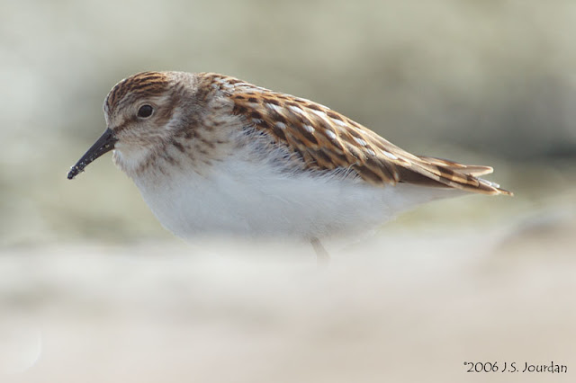 The peeps returned shortly after, and after giving up on the scope I decided to belly-crawl and work the 400mm. I was able to get w/in 2ft. of the Baird's Sandpiper and shoot about 60 pics w/ the D70.