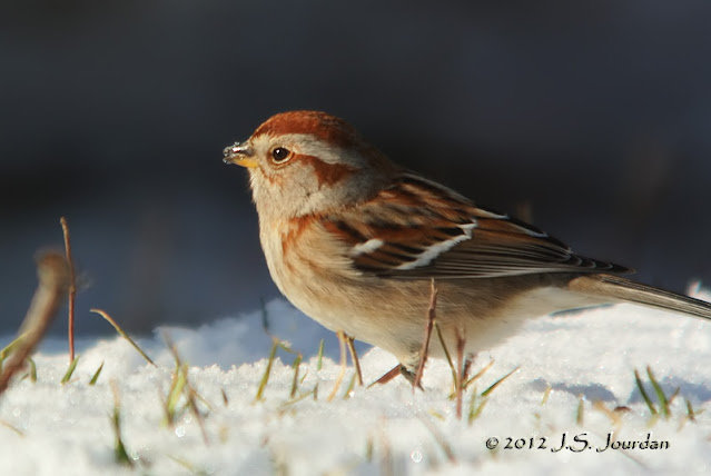 I made a quick run over to Haagerman Rd. and found a pair of Northern Harriers (male and female) and another 2 Red-tailed Hawks working the fields. Horned Larks were singing and flying about, but I did not see any longspurs or buntings. It was great running into Pat Gamburd, and we chatted a bit before I headed home.